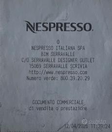 Vendo macchina del caffè Nespresso Vertuo Next, comprata in data 12/04/2026 (come riportato nello scontrino) e fatti solamente 5 caffè (vedi confezione omaggio che è compresa nella confezione). La vendo, per inutilizzo, in quanto mi è stata regalata una macchina del caffè automatica con macina caffè (in grani). E' in ottime condizioni, praticamente nuova. Regalo anche una confezione di capsule (al suo interno ne escono 10).