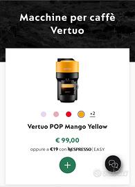Macchina caffe Nespresso Vertuo yellow, per passaggio ad altro modello, imballata, mai aperta, con sei mesi dí garanzia.