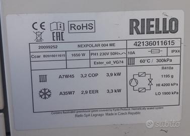 N. 2 POMPE DI CALORE NEXPOLAR INVERTER RIELLO MODELLO 004ME CODICE 20099252 UTILIZZATI SOLO 1 MESE