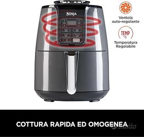 Ninja friggitrice ad aria, 3.8L, 4 in 1, digitale, cottura senza olio, frigge, arrostisce, disidrata, cestello antiaderente lavabile in lavastoviglie, 2-4 portate, grigio/nero, AF100EU.