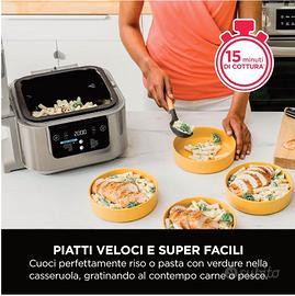 Ultimo modello ON500 colore NESSUN DIFETTO NUOVA color pietra oro. Prepara rapidamente pasti in 3 parti per tutta la famiglia, in soli 15 minuti* (*senza tempi di preriscaldamento). Cuoci tutte le parti del tuo pasto contemporaneamente, in un solo dispositivo 12 FUNZIONI DI COTTURA: pasto veloce, frittura ad aria con vapore, cottura al forno a vapore, cottura a vapore, cottura alla griglia, frittura ad aria, cottura al forno/arrosto, essiccazione, scottatura/cottura saltata, cottura lenta SISTEMA DI COTTURA RAPIDA: Cuoci a vapore e friggi ad aria contemporaneamente in un solo dispositivo. Prepara insieme pasta al dente, verdure tenere e fonti di proteine succulente e croccanti CUCINA CON POCO OLIO O SENZA: Cambia facilmente modalità di cottura con lo SmartSwitch. Fino al 75% di grassi in meno* con la funzione Frittura ad aria (*testato su patatine fritte tagliate a mano). CUOCE FINO A 4 PORZIONI: Include una casseruola di cottura antiaderente e lavabile in lavastoviglie da 5,7 l, un vassoio Cook and Crisp e un Ricettario creato da chef