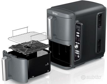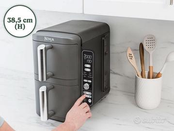 Ninja Double Stack XL Friggitrice ad Aria Verticale, Doppia Zona, 4 Livelli di Cottura e 2 Cassetti, Capienza 9.5L, 6 Funzioni, 8 Porzioni, Componenti Lavabili in Lavastoviglie, Grigio, SL400EU.