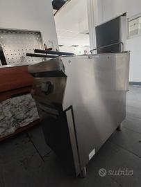 (prezzo di mercato 3.855,2 euro) NUOVA(mai usata) FRIGGITRICE A GAS CON TUBI DI FIAMMA PER INFARINATI 1 VASCA DA 23 lt CON 2 MEZZI CESTI Bruciatori in acciaio inox ad alta efficienza da 19 kW. I tubi di fiamma sono collocati all'interno della vasca. Per uso con gas naturale o GPL. Olio scaricato tramite rubinetto nel contenitore di raccolta posto sotto la vasca. Piedini in acciaio inox con altezza regolabile. Pannelli esterni in acciaio inox con finitura Scotch Brite. Piano di lavoro in acciaio inox 20/10. Coperchio incluso. Dim.: 40X90X120 - Pot. Gas. : 19,0 kW 2.299,00 euro