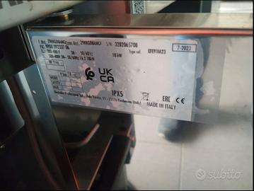 (prezzo di mercato 3.525,80 euro) FRIGGITRICE A GAS ZANUSSI EVO900, 23 litri, con 1 VASCA - Gamma cottura modulare bruciatori in acciaio inox ad alta efficienza (20 kW). Per uso con gas naturale o GPL. Vasca stampata a forma di "V". Olio scaricato tramite rubinetto in un contenitore posto sotto la vasca. Piedini in acciaio inox con altezza regolabile. Pannelli esterni in acciaio inox. Piano di lavoro in acciaio inox 20/10. Bordi laterali a taglio laser ad angolo retto per una perfetta giunzione con altre unità. Coperchio incluso. Caratteristiche e benefici • Vasca profonda a forma di “V”. • Bruciatori in acciaio inox ad elavata efficienza da 20kW dotati di dispositivo antispegnimento e posizionati all’esterno della vasca. • Regolazione termostatica della temperatura dell’olio fino ad un massimo di 190°C. • Dispositivo di protezione fiamma presente ad ogni bruciatore • Termostato di sicurezza contro il surriscaldamento di serie per tutte le unità. • Tutti i principali componenti sono posizionati nella parte frontale dell’unità per facilitare le operazioni di manutenzione. • Accensione piezoelettrica per una maggiore sicurezza. • Fornito di serie con 2 mezzi cestelli e 1 porta destra per l’armadio. • Strumento di monitoraggio della qualità dell’olio portatile opzionale (codice 9B8081) per una gestione efficiente dell’olio. Costruzione • Pannellatura esterna in acciaio inox con finitura Scotch Brite • I modelli hanno bordi laterali ad angolo retto per consentire giunture a livello tra le unità ed eliminare la possibilità di infiltrazioni. • Interno della vasca con angoli arrotondati per facilitare le operazioni di pulizia. • L’unità ha una profondità di 900mm per offrire una superficie di lavoro di più grandi dimensioni. • L’unità viene fornita di serie con 4 piedini di 50 mm in acciaio inox 2.099,00 euro