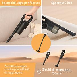 🧹 Funzione 3 in 1: si trasforma in aspirapolvere portatile per pulire con precisione auto, scale, mobili e angoli difficili, grazie agli accessori inclusi.