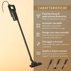 🔌 Cavo lungo 5 metri: pulisci ogni stanza senza interruzioni né batterie da ricaricare!