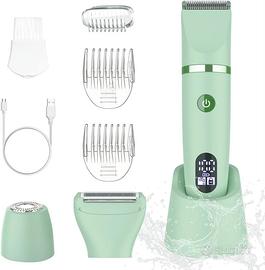 Permette di radere viso, ascelle, braccia, gambe, schiena e zona bikini in modo rapido e confortevole, senza residui, in pochi minuti. Con 3 lame intercambiabili, questo epilatore bikini si adatta a ogni zona del corpo, viso, bikini ecc. Epilatore donna per zona bikini. Trimmer impermeabile IPX7. Display LCD per verifica livello batteria. Ricaricabile come uno smartphone. Uso a secco e bagnato.