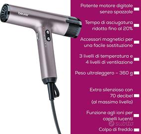 Beurer Asciugacapelli Beurer HC 100, Phon Potente da 1700 W per un'Asciugatura Rapida e Delicata e Acconciatura Precisa, 4 Livelli di Temperatura e Ventola, Bocchetta per Styling e Diffusore.