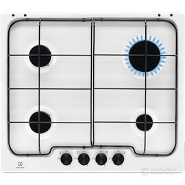 Piano cottura NUOVO, mai utilizzato e nemmeno collegato al gas, a causa di necessario cambio a piano a induzione (valore nuovo circa 180-190 euro). Dimensioni totali piastra 59x51 cm. Incassabile in un buco da 55x48 cm. Colore bianco smaltato. Per ulteriori dettagli cercate il numero modello PB640V sul sito Electrolux. Solo ritiro/consegna a mano, a Bologna e dintorni.
