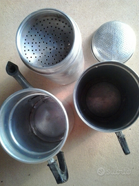 Grattugia a manovella con scatola originale a 10 euro. Caffettiera napoletana in alluminio a 10 euro.