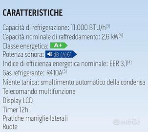 Olimpia Splendid Dolceclima Silent 11 A+ 3 funzioni: Raffrescamento, Ventilazione, Deumidificazione. Potenza del condizionatore: 11.000 BTU/h Usato poco, in ottime condizioni.