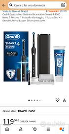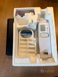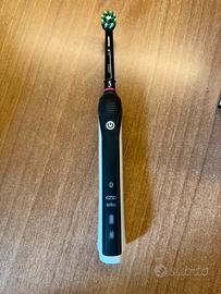 Spazzolino elettrico oral-b smart 4 4500 black edition bluetooth completo di: - Scatola originale - Custodia da viaggio - Basetta porta testine (Nuova mai usata) - Caricatore originale (Nuovo mai usato) - 6 Testine originali oral b cross action (Nuove) Dotato di bluetooth, si interfaccia con app dedicata oral-b scaricabile da appstore e google store per registrare tempo di spazzolamento, pressione utilizzata durante lo spazzolamento ed educa ad una corretta igiene orale. Controllo della pressione di spazzolamento: Avverte e riduce la velocità se si sta premendo troppo energicamente sulle gengive. Timer: Segnala 2 minuti di spazzolamento, come raccomandato dal dentista. Prezzo con testine :50€ Prezzo senza testine :40€ Lo spazzolino verrà consegnato senza la testina attualmente in uso, e ovviamente disinfettato. Voglio rassicurare che montando una testina nuova di quelle già presenti non sussitono problemi di igiene.