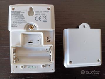 SENSORE WIRELESS ESTERNO "OREGON SCIENTIFIC" modello THGR122N !!! Il Sensore è nuovo mai usato e perfettamente funzionante. Misura e invia i valori di temperatura e di umidità relativa, visibili anche sul suo ampio Dispay LCD, rilevati all'esterno o in un ambiente interno diverso da quello in cui si trova l'unità principale. Il sensore remoto è alimentato da 2 batterie ministilo e va posizionato (se messo all'esterno) al riparo dalla luce diretta del sole e dalla pioggia, a un'altezza di circa 1,5 metri dal suolo e a una distanza massima, in assenza di barriere tra sensore e unità, di 30 metri. • Display incorporato: LCD alta risoluzione. • Dimensioni: 92 x 60 x 20 mm. • Peso: 49 grammi. • Canali di Trasmissione: 3 • Frequenza di Trasmissione: 433 MHz • Campo di trasmissione: 30 metri senza ostruzioni. • Intervallo termico di misurazione: da -20 °C. a + 60 °C. • Intervallo di misurazione dell'umidità: 25 - 95 % • Alimentazione: 2 batterie AAA da 1,5 V. (non incluse nella confezione). Il sensore è compatibile con le seguenti Stazioni Meteo OREGON SCIENTIFIC: BAR206 - BAR206S - BAR208S - BAR208HG - BAR218HG - BAR 368P - RAR213HG - RAR213HGX - RAR502 - RAR502S EMR211 - EMR211X - RRA320PNX