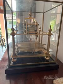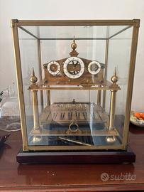 Vendo bellissima replica funzionante di orologio meccanico a sfera in stile Congreve, con meccanismo a vista, teca in vetro e struttura in ottone dorato. Base in legno ebanizzato.