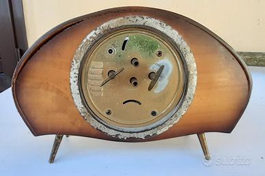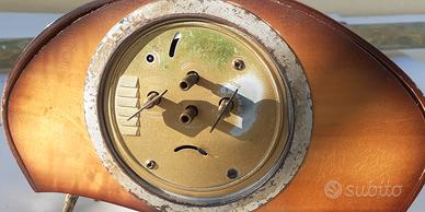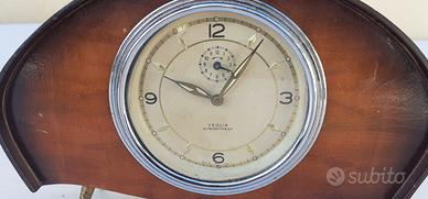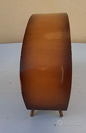 Piccolo orologio meccanico da tavolo in legno con contorno del quadrante in ottone di marca Veglia