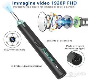 VITCOCO Otoscopio, 1920P 3,5mm Pulitore Orecchie, Pulizia Orecchie con 6 Luci LED, Pulisci Orecchie con Telecamera per iPhone iPad e Android(Nero).