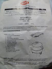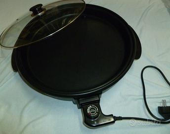Padella elettrica antiaderente del diametro di 40 cm, con termostato regolabile, adatta alla cottura o riscaldare cibi già pronti.