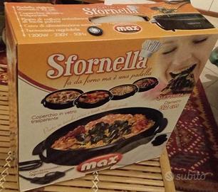 Padella Forno "Sfornella" Condizione: Nuovo Colore Nero Materiale padella: piano cottura antiaderente Materiale Coperchio: in vetro trasparente Diametro padella: 32 cm Distribuito da Max Italia Come da foto. Ottimo prodotto: padella elettrica- Forno Ha il suo termostato e funziona come una padella ma può fare anche da forno scaldando pietanze e si può fare una ottima pizza. Porta in tavola pizze e tanti raffinati piatti. Termostato regolabile. Spedizione con corriere postale Pacco tracciabile