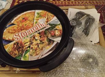Padella Forno "Sfornella" Condizione: Nuovo Colore Nero Materiale padella: piano cottura antiaderente Materiale Coperchio: in vetro trasparente Diametro padella: 32 cm Distribuito da Max Italia Come da foto. Ottimo prodotto: padella elettrica- Forno Ha il suo termostato e funziona come una padella ma può fare anche da forno scaldando pietanze e si può fare una ottima pizza. Porta in tavola pizze e tanti raffinati piatti. Termostato regolabile. Spedizione con corriere postale Pacco tracciabile