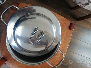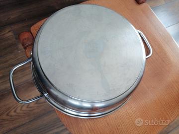 Padella in acciaio inox marca frabosk made in italy. Misure altezza 8 cm diametro 27. Completa di coperchio. Utilizzata pochissimo