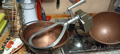 Padella in rame per polenta con mescola a motore funzionante del 1975,usata ma in ottimo stato.Prezzo trattabile