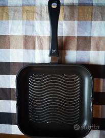 Nel dettaglio: padella misura 30 cm, 20 cm, 36x26 cm mai usate ancora in confezione originale; misura 24 cm e bistecchiera 27x27 cm usate.