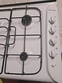Piano cottura a gas Indesit di colore bianco. Due imperfezioni come da foto ma rimangono dietro e non si vedono.