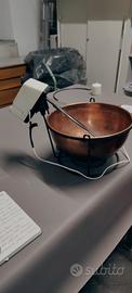 paiolo in rame funzionante capacità LT. 7 / 9 x 8 / 10 persone diametro 32 cm altezza cm. 19 con motore h. cm.30