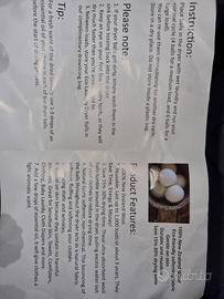 vendo confezione di n.6 palline di asciugatrice funzione ammorbidente, 7 cm diametro, usate una decina di volte, con libretto