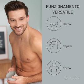 Panasonic ER-GB80-H503 Regolabarba, Tagliacapelli da Uomo, Tagliacapelli Portatile Cordless Impermeabile, 39 Impostazioni di Lunghezza, 3 Accessori, Funzionamento Senza Filo e con Filo, Argento Scuro TAGLIO PRECISO: Le lame giapponesi in acciaio inossidabile a 45°, resistenti e affilatissime, tagliano qualsiasi tipo di pelo per radere barba, corpo e capelli REGOLABARBA, CAPELLI E CORPO: Rasoio elettrico di precisione 3 in 1 dotato di 3 pettini separati per una rasatura rapida, semplice e comoda di viso, testa e corpo 39 IMPOSTAZIONI DI LUNGHEZZA: Il tagliacapelli ricaricabile ha una ghiera facilmente regolabile con 39 impostazioni di lunghezza da 0,5 a 20mm, con intervalli di 0,5 mm, per offrirvi sempre una rifinitura ottima TAGLIABARBA PRECISO: L'esclusivo regolabarba a scorrimento consente di modellare con facilità baffi, basette e bordi della barba, mentre le lame a 45° garantiscono una rasatura rapida, confortevole e precisa FACILE DA USARE: Il tagliacapelli ergonomico si ricarica completamente in 1 ora, garantendo 50 minuti di utilizzo senza fili, ha un design impermeabile per una facile pulizia sotto l'acqua e può essere utilizzato anche con l'AC DA VIAGGIO: Le dimensioni compatte, la custodia da viaggio, il funzionamento a batteria e la tensione di alimentazione variabile (100-240V) fanno di questo regolabarba portatile l'accessorio perfetto per la rasatura in viaggio