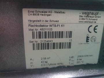 vendo pannello solare termico weishaupt da 2.58 m² usato