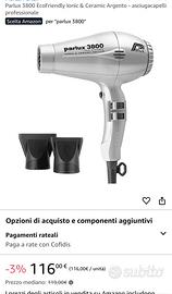 Asciugacapelli professionale Parlux 3800 in ottimo stato tranne qualche leggero segno di usura visibile in foto, perfettamente funzionante, passacavo e carboncini nuovi.