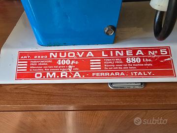 Vendo passapomodoro elettrico OMRA Nuova Linea N°5, modello professionale con motore potente, ideale per preparare salsa di pomodoro fatta in casa in modo veloce ed efficiente.