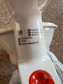 Passaverdure elettrico con 3 dischi in dotazione per polpa grossolana, media e fine. Pala in Acciaio Inox, smontabile e lavabile in lavastoviglie. Ideale per le pappe dei bambini.