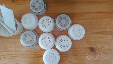 Compresi ci sono tutti i pezzi per fare ogni tipo di pasta (come mostrato in foto), ricettario e manuale (solo in italiano)