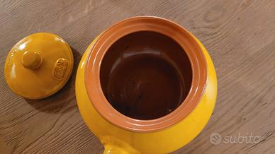 Caratteristiche principali: Realizzata in terracotta naturale, spesso con smalti certificati, è dotata di coperchio e garantisce un calore uniforme.