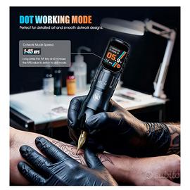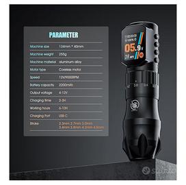 Vendo per inutilizzo (confezione ancora sigillata) Penna Rotante Professionale LIUMATE in lega di alluminio spaziale, colore nero. Si tratta di una macchina per tatuaggi wireless ad alte prestazioni, ideale per chi cerca precisione, autonomia e versatilità in un unico strumento. Caratteristiche Principali: Motore Coreless ad alta precisione: Potente (fino a 12V/9000 giri/min), estremamente silenzioso e con vibrazioni ridotte al minimo. Non si surriscalda anche dopo sessioni prolungate. 7 Corse Regolabili (Stroke): Versatilità massima con lunghezze di corsa selezionabili: 2.3mm, 2.7mm, 3.0mm, 3.4mm, 3.8mm, 4.2mm e 4.5mm. Perfetta sia per linee sottili che per sfumature (shading) e riempimenti pieni. Doppia Batteria da 2200 mAh: Incluse nella confezione 2 batterie ricaricabili. Ogni batteria garantisce 7-10 ore di lavoro continuo con una ricarica rapida di sole 2-3 ore. Display OLED a colori: Schermo ad alta definizione per monitorare in tempo reale tensione, tempo di sessione, modalità e stato della batteria. Funzioni Smart: * 3 Modalità di memoria (M1-M3) per salvare i tuoi voltaggi preferiti. Timer integrato per gestire la durata del lavoro. Auto-spegnimento dopo 5 minuti di inattività per preservare la batteria. Specifiche Tecniche: Marca: LIUMATE Materiale: Lega di alluminio aeronautico Colore: Nero Pezzi totali nel set: 32 (include accessori/aghi/ricambi come da confezione originale)