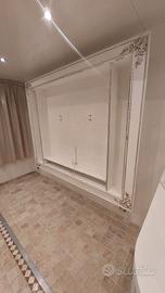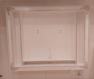 . Elegante e raffinato pensile porta televisore, arricchito da una grande cornice con decorazioni in rilievo fatte a mano