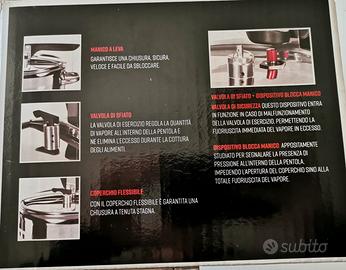 Vendo pentola a pressione 5 lt. marca Gusto Casa in acciaio inox di alta qualità, nuova e mai usata (come visibile dalle foto, è ancora nell'imballaggio originale).