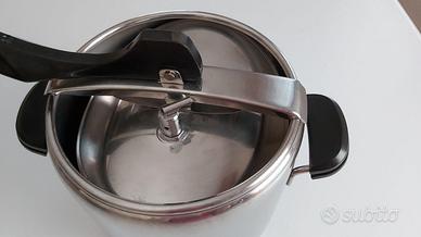 Pentola a pressione marca Lagostina in acciaio inox 18/10, di grande dimensione (livello max del contenuto indicato dalla tacca esterna, misurato x max 5 litri). Istruzioni incluse. Ottimo stato di conservazione. Può essere utilizzata senza coperchio, come pentola x cucinare la pasta...