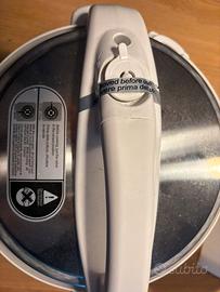 La pentola a pressione elettrica di Masterpro by Carlo Cracco è uno strumento indispensabile nella cucina moderna. I cibi vengono cotti sotto pressione, ovvero a temperature superiori ai 100 gradi C. I tempi di cottura si accorciano fino al 70%, con consistente risparmio di tempo e risparmio energetico che arriva fino al 50% rispetto a una cottura tradizionale. Contrariamente a quanto si possa pensare la cottura sotto pressione avviene in maniera delicata preservando i sapori e gli elementi nutrizionali, e soprattutto evitando lo sviluppo di sostanze nocive per la salute, come può avvenire nella cottura ad alte temperature. Nel caso di proteine e legumi, la cottura a pressione aumenta addirittura la digeribilità dei piatti. 12 funzioni preimpostate per cotture senza pensieri e dai risultati ottimali. Temperatura e timer regolabili e visualizzate su display LED, per personalizzare le possibilità di cottura. Contenitore interno in alluminio da 6 litri con scala graduata impressa per facilitare il dosaggio degli ingredienti.