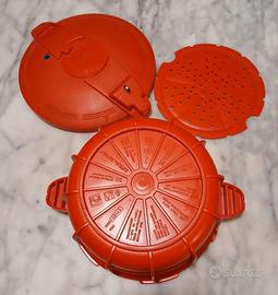 Pentola a pressione pensata per l'uso nel microonde. Il suo design la rende pratica e facile da usare. - Realizzata in materiale resistente. - Colore vivace e moderno. Usata pochissimo (pari al nuovo) Metodo rapido per cucinare pasta, riso, carni, verdure, legumi, stufati. Come la pentola a pressione tradizionale ma con notevole risparmio di tempo #cucina #pentolaapressione #microonde