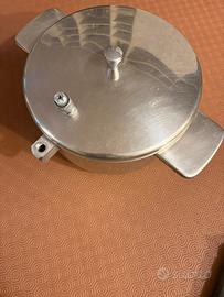 Vendo, causa inutilizzo, pentola in acciaio con intercapedine riempita con acqua, per mantenere costante la temperatura sempre al di dotto dei 100 gradi. Fornita di tappo di sfiato di sicurezza!