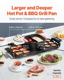 Grande capacità: dotata di una pentola calda staccabile da 9,06 x 9,06 x 3,54 pollici (230 x 230 x 90 mm) e due teglie per griglia da 9,45 x 8,66 pollici (240 x 220 mm), la nostra pentola calda e griglia da 3,25 L può facilmente servire da 1 a 6 persone per un incontro divertente e sostanzioso