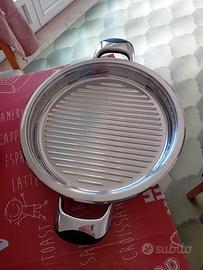 Vendo bistecchiera acciaio inox tenuta benissimo senza graffi, ottima per tagliate, costate o verdure grigliate.. Misura interna 28 cm, misura esterna senza manici 32 cm, spessore fondo 1 cm e 1/2, ha nel coperchio il regolatore della temperatura interna (no digitale)