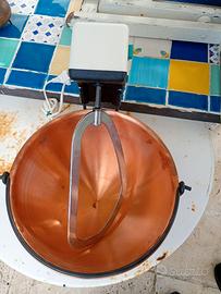 Pentola in rame con piedistallo, frusta elettrica per polenta. Mai utilizzata. Sempre nel suo imballo originale