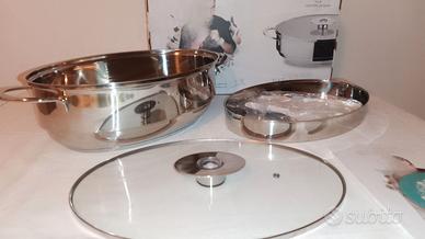 Vendo Pentola MEPRA per cottura a vapore, NUOVA MAI USATA! Nata dalla collaborazione con il noto Chef Andrea Mainardi, completamente in acciaio inox, con tutti gli accessori, inclusi separatori interni per la cottura separata e contemporanea dei cibi, manuale di utilizzo e dischetto con le istruzioni da computer. Con tutta la scatola, l’imballo e le plastiche originali contenenti i diversi accessori. Ottimo regalo di nozze o equivalente. Altre foto disponibili. Vendo a metà prezzo. Occasione unica.