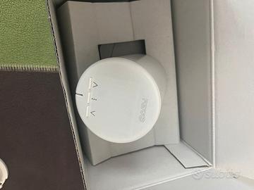 VENDO 3 NUOVE VALVOLE a 200 EURO VENDO ANCHE SEPARATAMENTE A 70 EURO VALVOLA ELETTRONICA RADIO CON SONDA DI TEMPERATURA E DISPLAY PER TERMOSIFONI Le VTRX05 valvole elettroniche intelligenti installate in impianti a termosifone possono essere associate al CRM4.0 per la realizzazione di impianti a Termoregolazione Evoluta o installate stand alone sui caloriferi/scaldasalviette dell'abitazione. Le VTRX05 installate stand alone permettono l’accensione dei caloriferi con regolazione puntuale dei set di temperatura T1 (temperatura confort), T2 (temperatura di riduzione) attraverso i tasti posti sul frontale della valvola. Le VTRX05, possono essere programmate con un profilo orario giornaliero. Regolano i periodi orari di confort (T1) e di riduzione (T2) svolgendo così la funzione di cronotermostato giornaliero. • Alimentazione 3V 2x1,5V pile tipo AA - Alcaline NiMh ricaricabili o Litio • Sonda di temperatura ambiente incorporata • Funzionamento con intervento modulante • IP40 • Autonomia 12 mesi circa in base alle operazioni giornaliere • Forza Max di spinta in chiusura 8 Bar • Compatibile con valvole termostatizzabile con PN (portata Nominale) 8 Bar e ∆P (differenziale) 1 Bar • Indicazione carica batterie e/o anomalie • Dimensioni (L x Ø) 85,5 x 53 mm