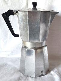 Si tratta di una grande caffettiera usata in alluminio da 14 tazze della ditta PEZZETTI che e’ un marchio italiano noto per le sue moka; queste caffettiere, grazie alla loro costruzione in alluminio, garantiscono una perfetta distribuzione del calore e sono progettate per preparare un espresso ricco ed autentico in stile italiano.