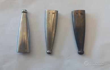 Per collezionisti e restauratori di cose militari, cedo un lotto di ottimi puntali in acciaio e ottone , come da foto, per foderi in cuoio della baionetta tedesca WW1 e WW2 adattabile anche a quelle di altre nazioni essendo più o meno simili. In foto le misure. Oggetti originali, non restaurati ben tenuti. PREZZO NON SCONTABILE. OGGETTO CHE NON SI TROVA PIÙ IN QUESTE CONDIZIONI .